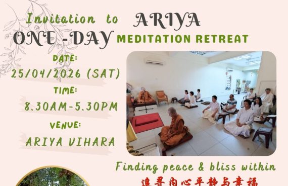 Ariya One Day Meditation Retreat on 25 April 2026 (Saturday) 8.30AM to 5.30PM