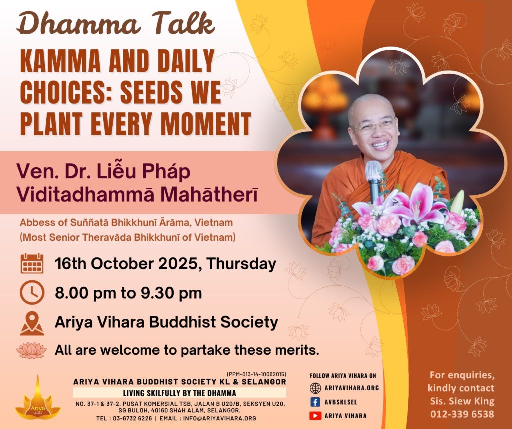 - Dhamma Talk by Ven. Dr. Lieu Phap Mahatheri on 16 Oct 2025 (8PM to 9.30PM)