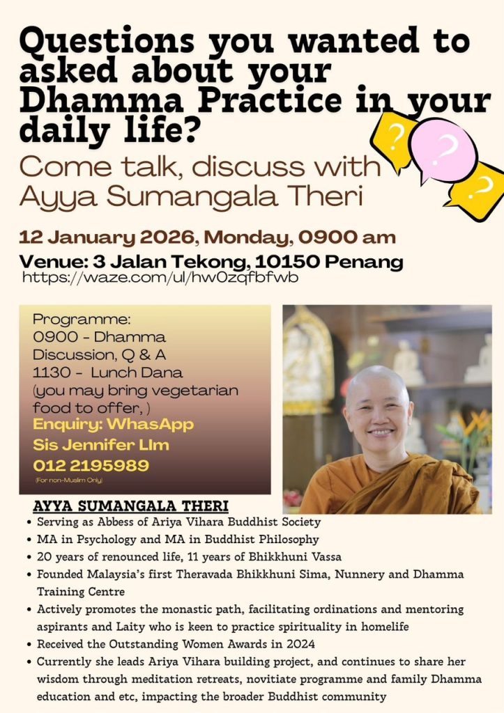 • Dhamma Discussions in Penang on 12 Jan 2026 (9 AM)