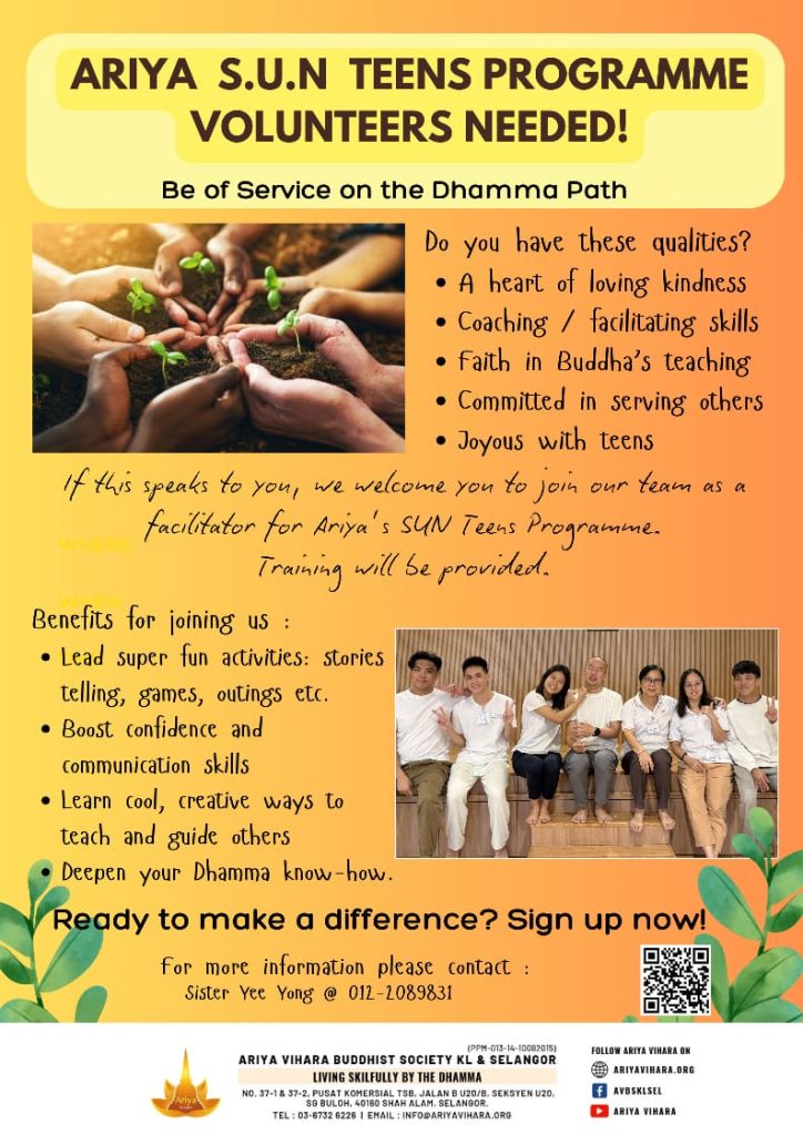 - Volunteers Needed for Ariya S.U.N. Teens Programme