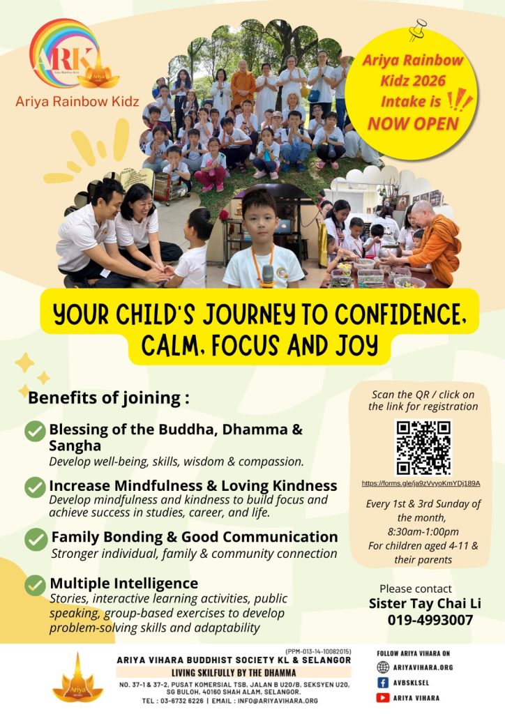 - One Day Meditation Retreat at Seri Petaling Bhavana Center on 17 Jan 2026 (9AM – 5.30PM)