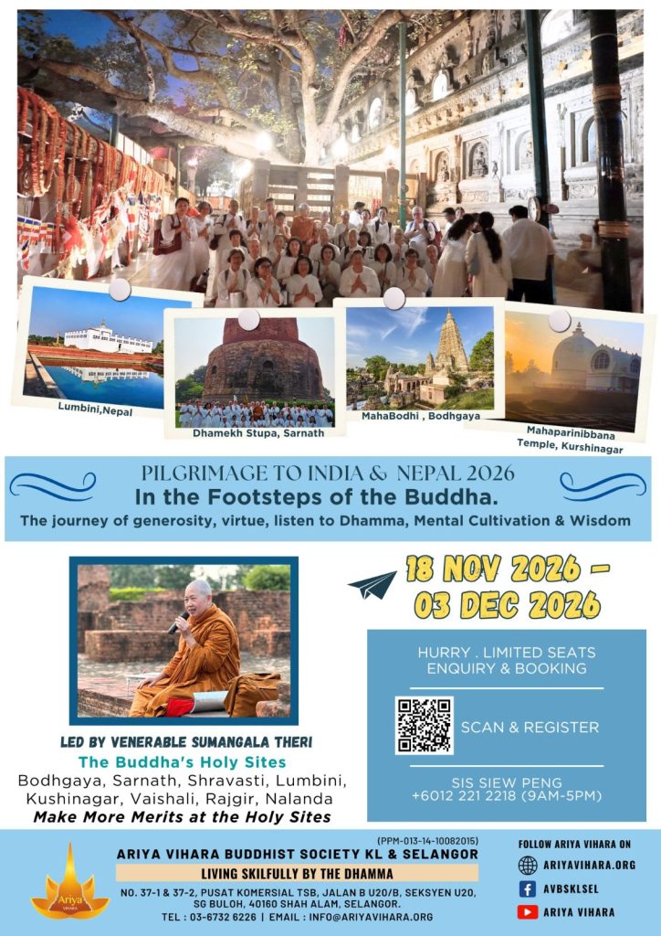 - Ariya One-Day Meditation Retreat on 24 Jan 2026 (8.30AM to 5.30PM)