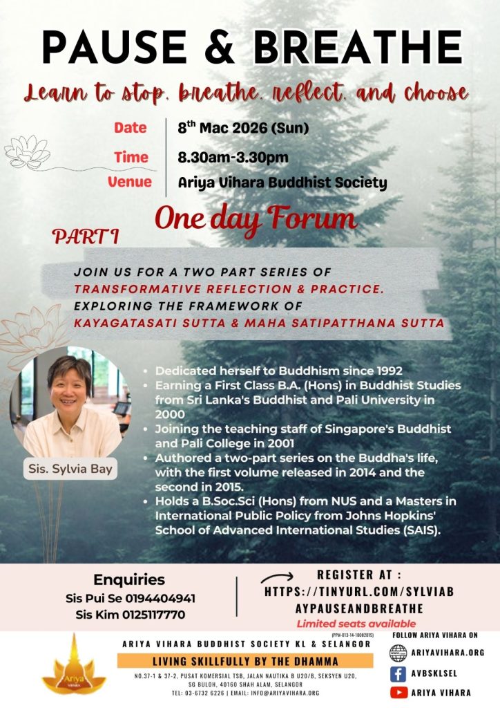 - Dhamma Talk at Shah Alam Buddhist Society on 1 Feb 2026 (9.15AM to 11.15AM)