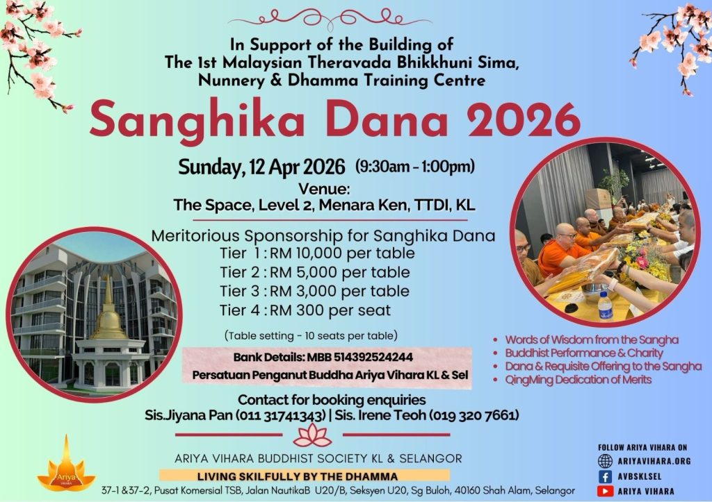 - Sanghika Dana on 12 April 2026 (Sunday) at Menara Ken, TTDI KL from 9.30 AM to 1 PM