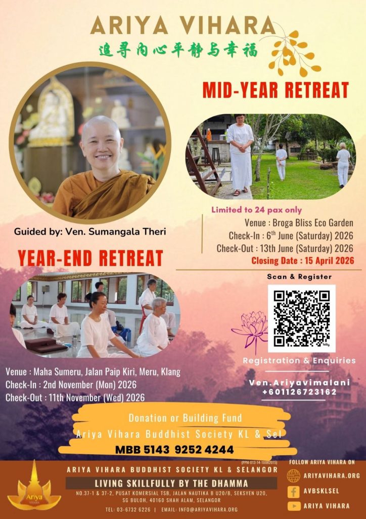 • Ariya WISE – Dhamma Sharing – 4 March 2026 (1.30PM to 4PM)