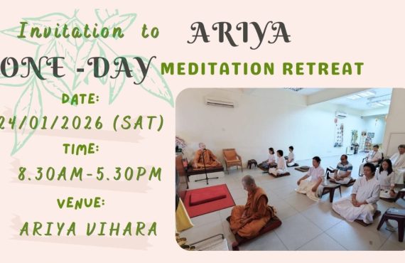 Ariya One-Day Meditation Retreat on 24 Jan 2026 (8.30AM to 5.30PM)